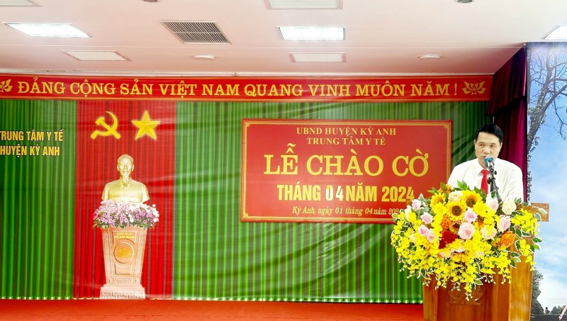 Thực hiện chương trình công tác tháng 04, Chiều ngày 01/04/2024 Trung tâm Y tế huyện Kỳ Anh đã tổ chức Lễ Chào cờ đầu tháng 04; đánh giá hoạt động trong tháng 03 và triển khai nhiệm vụ trọng tâm tháng 04.