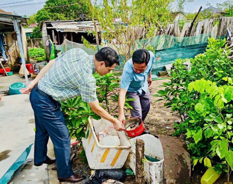 Đoàn giám sát và thu gom các dụng cụ phế thải tại các hộ gia đình..
