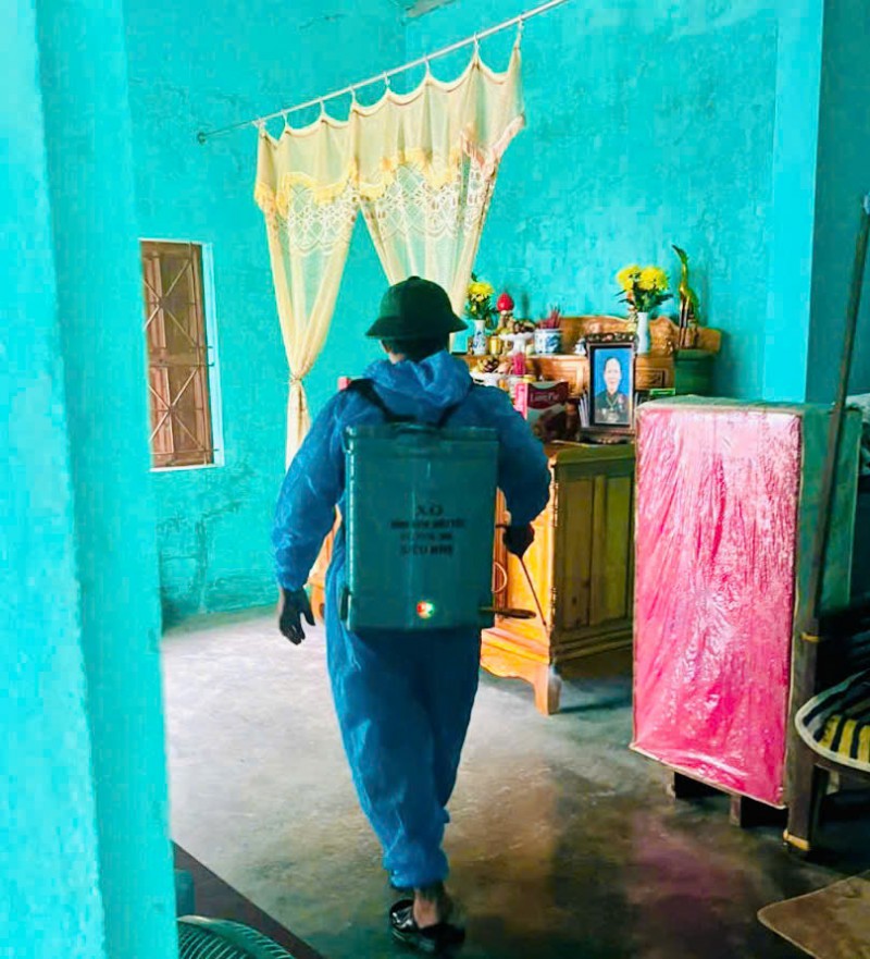 Cán bộ Y tế phun hoá chất diệt muỗi tại các hộ gia đình..