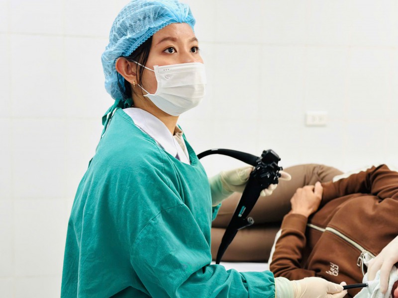 Các Bác sĩ Trung tâm Y tế Kỳ Anh nội soi dạ dày cho người dân