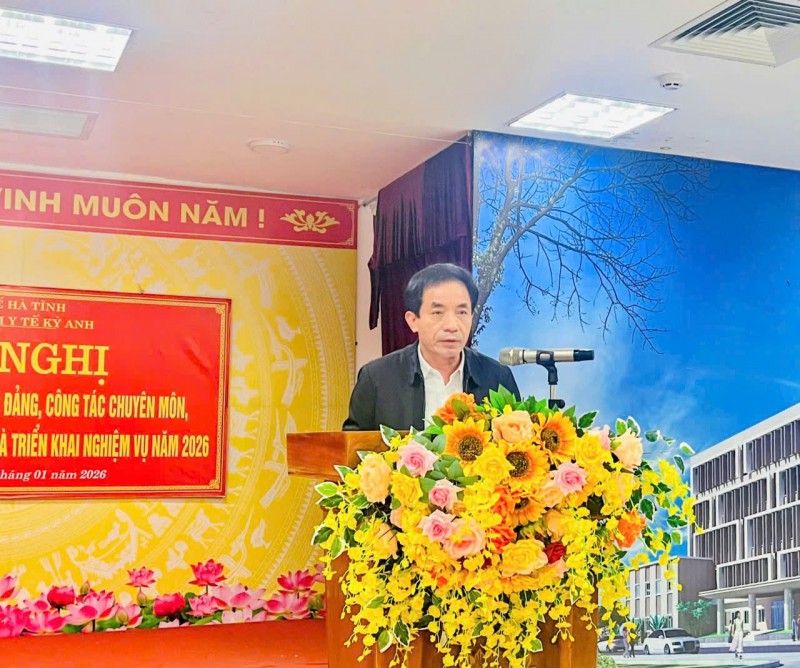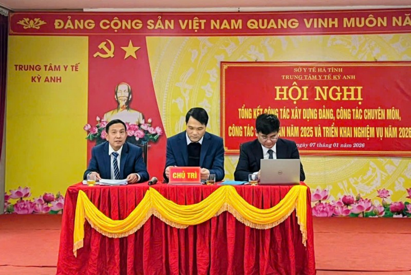 Thực hiện chương trình công tác tháng 1 năm 2026, chiều ngày 07/01/2026 Trung tâm Y tế Kỳ Anh tổ chức Hội nghị tổng kết công tác xây dựng Đảng, công tác chuyên môn, công tác công đoàn năm 2025; Triển khai phương hướng, nhiệm vụ năm 2026. Tham dự và chỉ đạo Hội nghị về phía Sở Y tế có đồng chí Lê Chánh Thành, Phó Giám đốc Sở Y tế, đại diện lãnh đạo các phòng, ban Sở Y tế; Đại diện Liên Đoàn LĐ Tỉnh, BHXH Tỉnh, Đảng bộ xã Kỳ Anh; Về phía Trung tâm Y tế có đồng chí Lê Văn Luật, Bí thư Đảng uỷ, Giám đốc Trung tâm; Các đồng chí BCH Đảng uỷ, Ban Giám đốc, BCH Công đoàn, Trưởng khoa/phòng, điều dưỡng trưởng, cán bộ, viên chức, người lao động toàn Trung tâm; Trưởng/ phụ trách Trạm Y tế các xã.