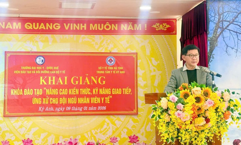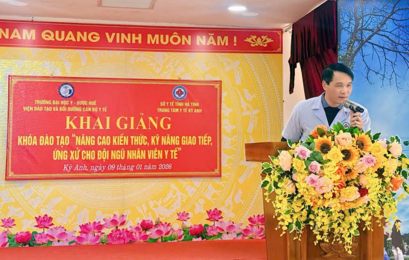 Thực hiện chương trình công tác tháng 1 năm 2026, chiều ngày 09/01/2026, Trung tâm Y tế Kỳ Anh phối hợp với Trường Đại học Y Dược – Huế tổ chức khai giảng khóa đào tạo “Nâng cao kỹ năng giao tiếp, ứng xử cho đội ngũ nhân viên y tế”.