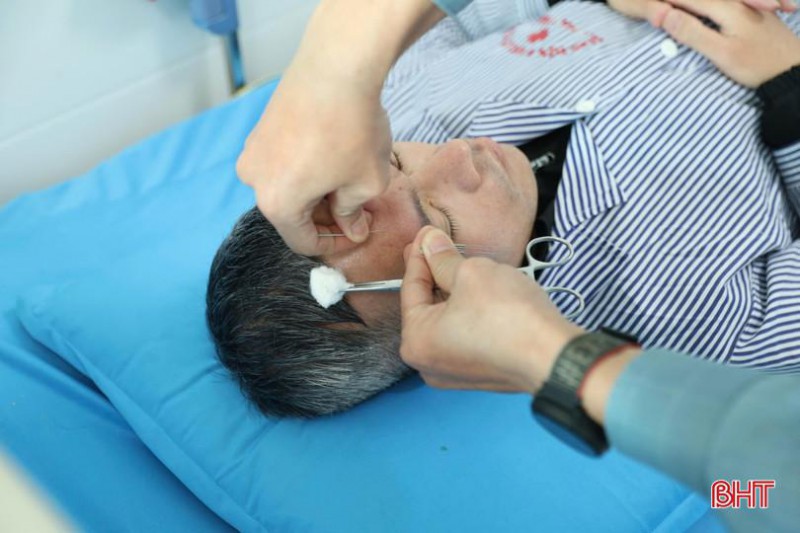 Ngủ dậy với triệu chứng mắt phải nhắm không kín, miệng bị lệch về phía bên trái, uống nước bị trào ra nên bệnh nhân N.T.C (41 tuổi, phường Thành Sen) nhanh chóng được đưa đến Bệnh viện Y học cổ truyền Hà Tĩnh. Qua thăm khám, các bác sĩ chẩn đoán bệnh nhân C. bị liệt dây thần kinh số 7.
