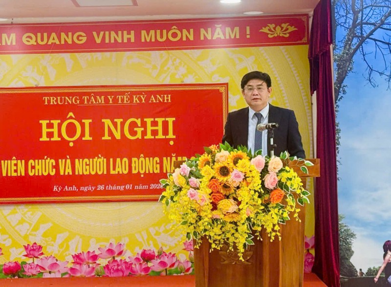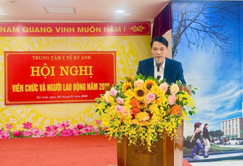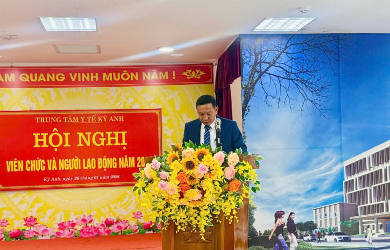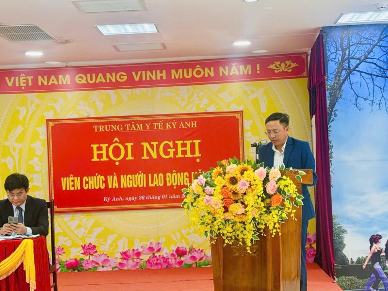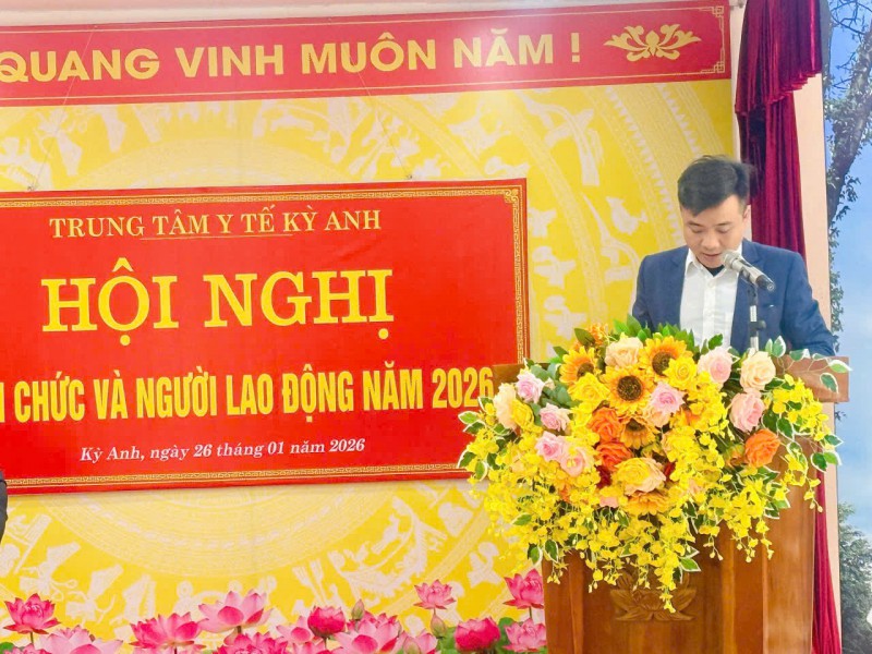 Chiều ngày 26/01/2026, Trung tâm Y tế Kỳ Anh tổ chức Hội nghị Viên chức - Người lao động năm 2026. Tham dự và chỉ đạo hội nghị có đồng chí Lê Văn Luật, Bí thư Đảng uỷ, Giám đốc Trung tâm; các đồng chí trong Ban Giám đốc; Ban Chấp hành Công đoàn; Trưởng/phó các khoa, phòng; Viên chức, người lao động Trung tâm.