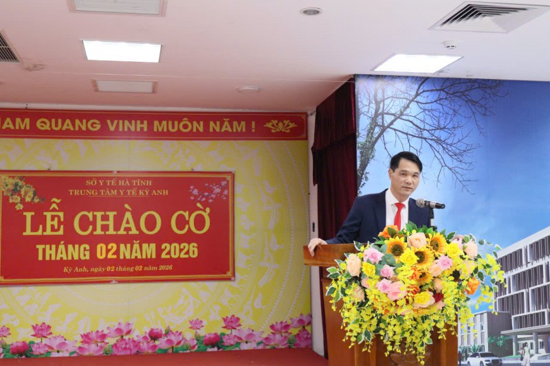 Thực hiện chương trình công tác tháng 02, chiều ngày 02/02/2026 Trung tâm Y tế Kỳ Anh tổ chức Lễ Chào cờ đầu tháng 2. Tham dự có các đồng chí trong BCH Đảng ủy, Ban Giám đốc; Trưởng/ phó các khoa, phòng; cùng toàn thể cán bộ, đảng viên, người lao động Trung tâm. Tại Lễ chào cờ phòng Kế hoạch Nghiệp vụ - Tài chính Kế toán thông qua báo cáo kết quả hoạt động trong tháng 01; triển khai nhiệm vụ trọng tâm tháng 02.