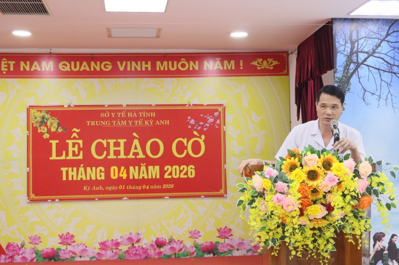 Thực hiện chương trình công tác tháng 04, chiều ngày 01/04/2026 Trung tâm Y tế Kỳ Anh tổ chức Lễ Chào cờ đầu tháng 4. Tham dự có các đồng chí trong BCH Đảng ủy, Ban Giám đốc; Trưởng/ phó các khoa, phòng; cùng toàn thể cán bộ, đảng viên, người lao động Trung tâm. Tại Lễ chào cờ phòng Kế hoạch Nghiệp vụ - Tài chính Kế toán thông qua báo cáo kết quả hoạt động trong tháng 03; triển khai nhiệm vụ trọng tâm tháng 04.