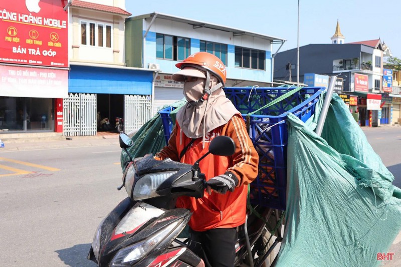 Không chỉ người cao tuổi, những lao động làm việc ngoài trời cũng đang chịu tác động rõ rệt từ đợt nắng nóng này. Là người làm nghề vận chuyển hàng hóa, mỗi ngày chị Trần Thị Dương (TDP Tiến Giang, phường Trần Phú) di chuyển trung bình 50 - 60 km quanh khu vực trung tâm phường Thành Sen. Những ngày nắng nóng kéo dài khiến công việc vốn vất vả của chị càng thêm nhọc nhằn.